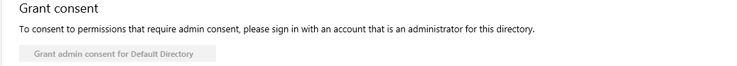 If you are not currently logged in as a user with admin rights, the option to grant admin consent is disabled on the API Permissions page.