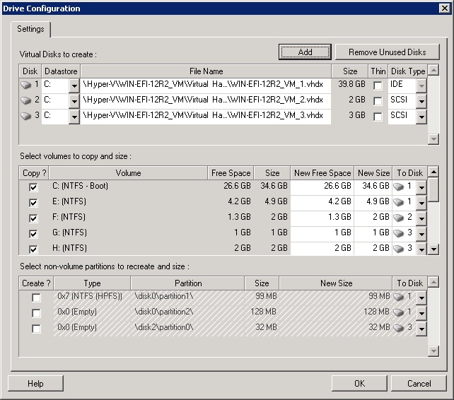 Specify drive and volume configurations to be migrated.