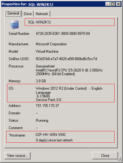 Figure 3-1 provides an example of X2P host names for target workloads with and without an operating system present. Workloads X2P-HV-LX-VM3 and X2P-HV-WIN-VM1 do not have an underlying operating system. The LRD information is displayed as the operating system.