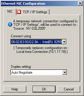 Duplex setting: Use the drop-down list to select network card duplexing. It must match the duplex setting for the switch to which the network interface is connected. When the source is connected to switch ports that are set to 100 Mbps full duplex and cannot be changed to auto negotiation, select Force NIC to Full Duplex.