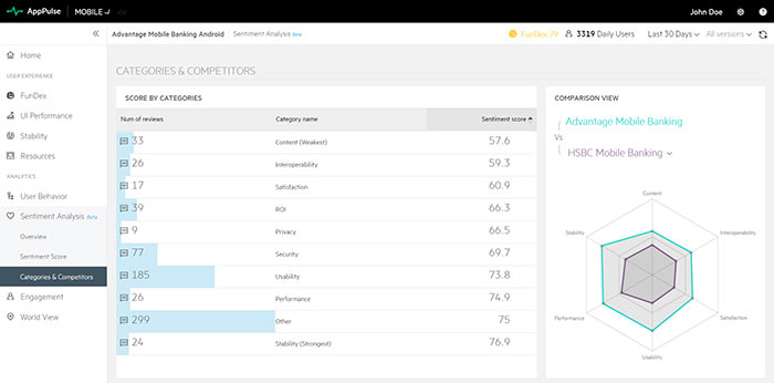 Sentiment Analysis is now available. Mobile Sentiment Analysis analyzes your app ratings and reviews and provides the most important sentiment categories which can influence your app rating (including competitor benchmarks).